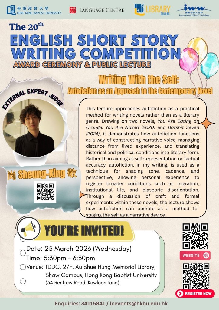 - Mixed-mode Short Story Writing Workshop 1 (Plot and Character): 12 December 2025 (Friday) 10:00 am – 12:00 nn